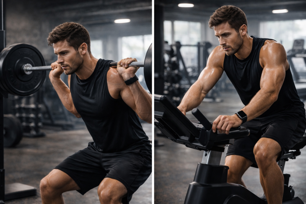 También conviene mirar el día de piernas con lupa. Si vas a entrenar cuádriceps y glúteos pesado, no parece la mejor idea meter antes series de sprints o una corrida larga. En esos días, una bici suave al final o directamente dejar el cardio para otro momento suele ser una jugada mucho más inteligente.