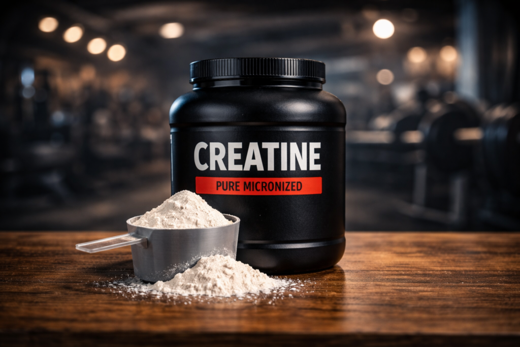 Si hubiera que elegir un solo suplemento para fuerza, potencia y ganancia de masa magra junto con entrenamiento, la creatina monohidratada está primera en la fila. Su mecanismo es bastante simple: aumenta las reservas musculares de fosfocreatina, lo que mejora la resíntesis rápida de ATP durante esfuerzos intensos y repetidos. En castellano: te ayuda a sostener mejor el trabajo duro que de verdad construye resultados.